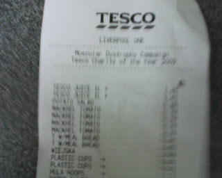 Priser på mat i England: Her er kvitteringa fra Tesco i dag. (In Norwegian)